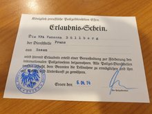 Ein Kommissar in königlich, preußischer Polizeiuniform vertritt die Polizeihistorie im Jahre 1914. Er stellt den Gästen der Veranstaltung Erlaubnis-Scheine und auch den "Passier-Schein A38" aus. (siehe Foto)