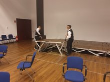 Über Weihnachten und Silvester im Hotel übernachten? Für unsere Handwerker der Baufirma nichts Neues. Drei Wochen hat der Umbau der Bühne in Anspruch genommen.