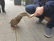Jedes Jahr zur selben Zeit besuchen uns unsere zwei gefiederten Freunde. Heute hat sich der Erpel allerdings nicht blicken lassen. Seine Frau hingegen war wie immer sehr zutraulich und hat sich über den kleinen Leckerbissen der Kollegen am Morgen gefreut. Gut gefrühstückt, konnte Sie nun wieder Platz auf ihrem Nest nehmen, welches sich unmittelbar hinter dem Hotel in einem Lorbeerbusch befindet. Jedes Jahr kommen sie wieder um ihre Eier hier auszubrüten.